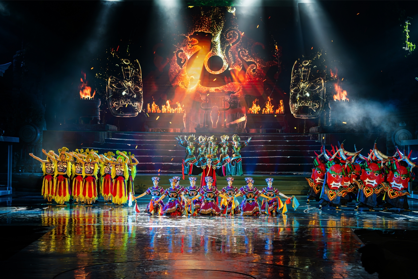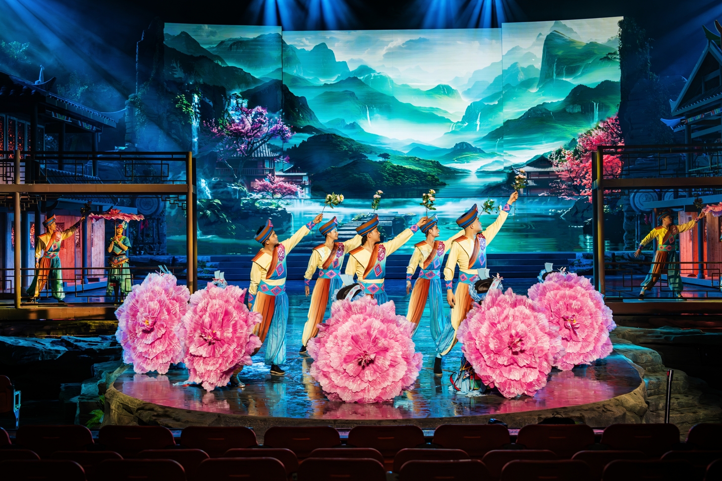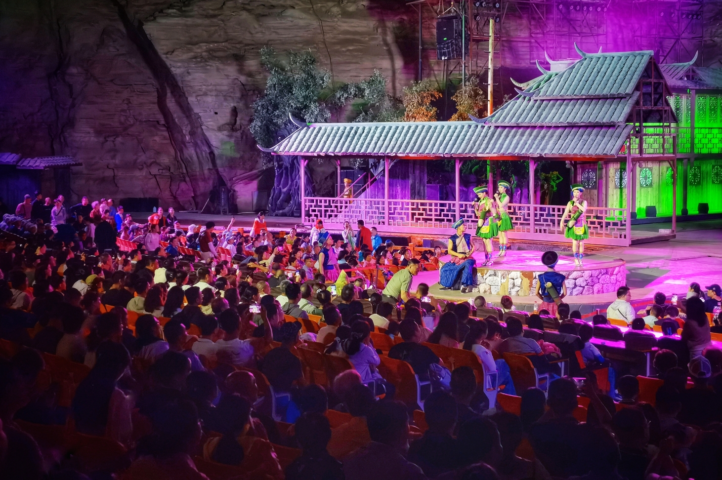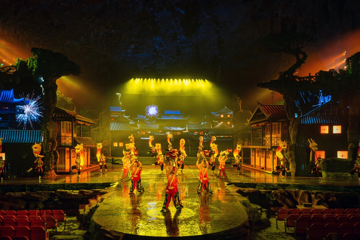 以雄、险、奇、幽、秀为特色的洞穴系统景观、震撼创新的民族文化演艺为资源主体,